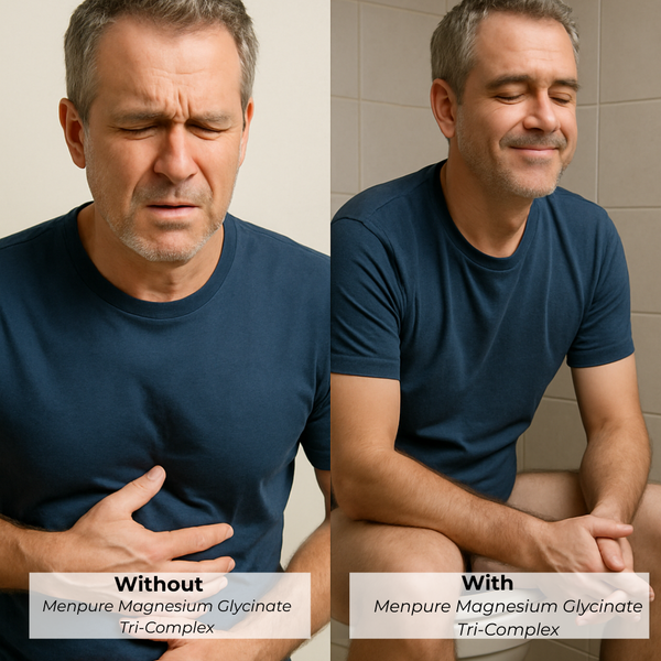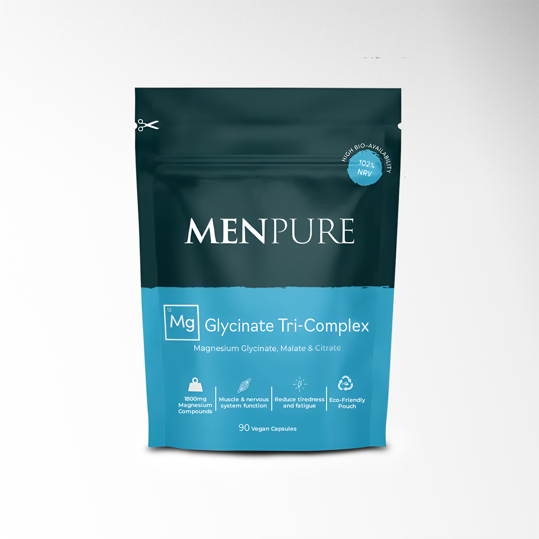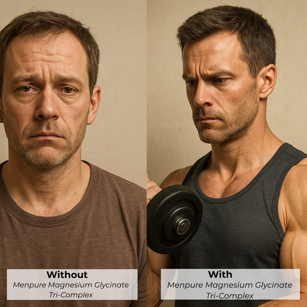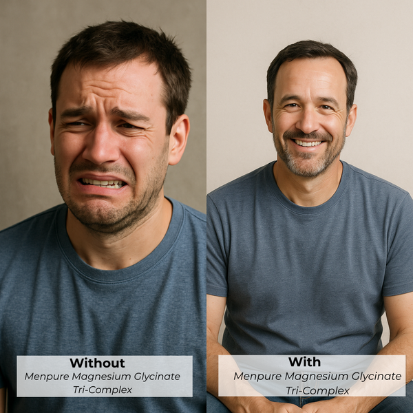 Did you know that low magnesium levels are one of the leading contributors to poor sleep, muscle cramps, and high stress? Our Menpure Magnesium Glycinate Tri-Complex combines three premium forms, Glycinate, Malate, and Citrate, for maximum absorption and effectiveness. This triple-action formula helps you sleep better, recover faster, and stay energized, all while being gentle on your stomach.