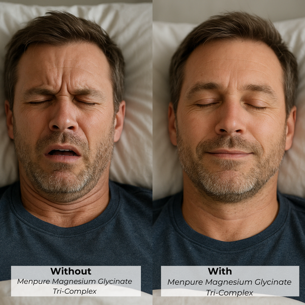 Menpure Magnesium Glycinate Tri-Complex helps calm the nervous system and supports natural melatonin release, making it easier to fall asleep and stay asleep.